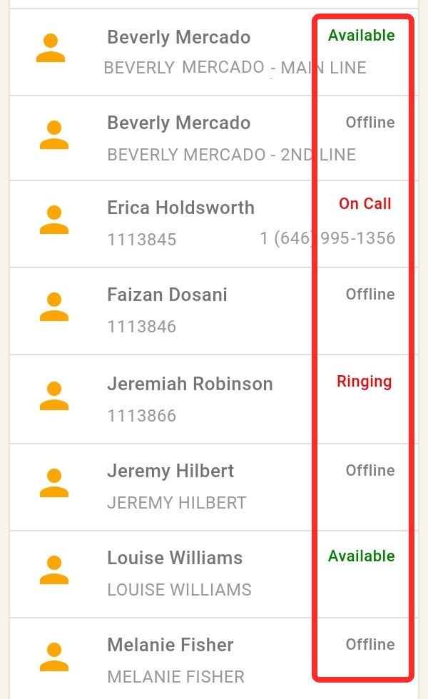 A red or grey status indicates the user is not available to take calls. A green indicates they can take calls.Offline: The user is signed out of their account or is without internet access.