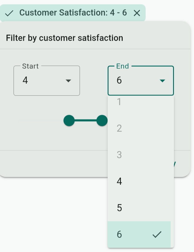 - Customer Satisfaction: Use the two sliders or the Start/End menus to select a value from 1-10.