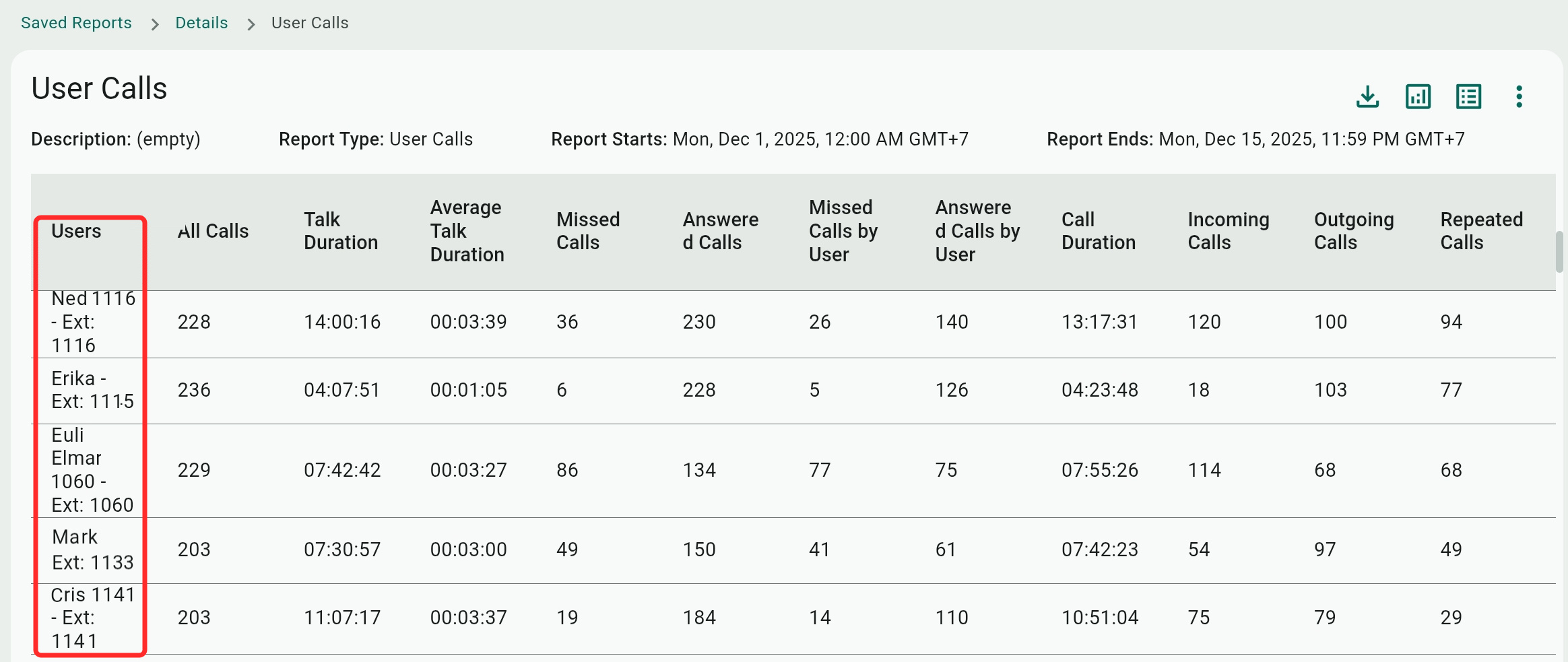 - Talk Duration: The sum of the talking time involving callers and users, from the moment a call is answered.