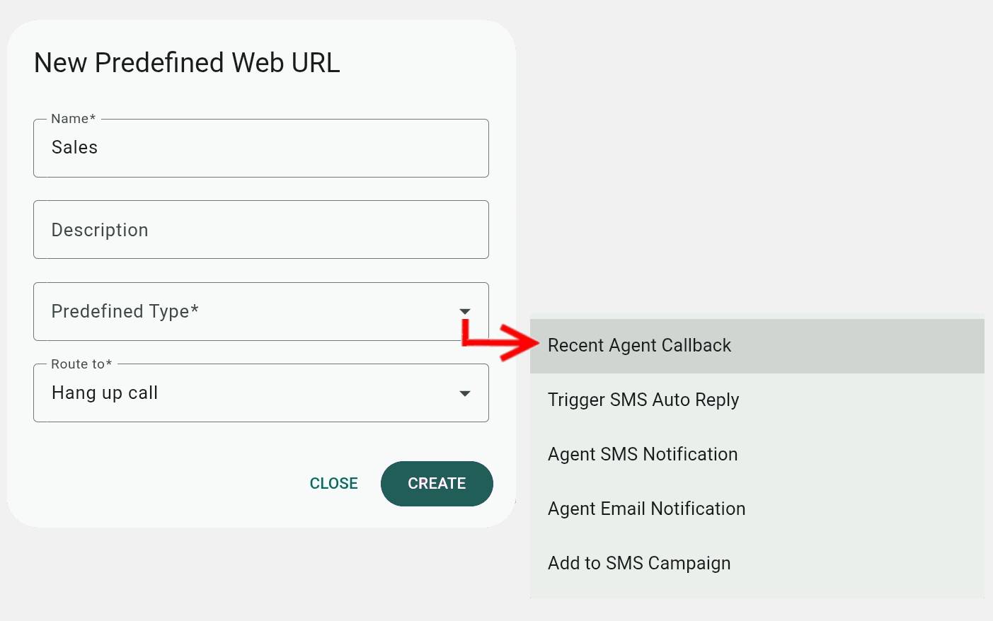 - Predefined Web URLs: These are easier and faster to set up as they don't require an external server. Routing does not depend on any response parameters, and calls are routed instantly to a predefined destination. Additionally, they also offer automation of agent notifications, SMS replies, and other system functions.